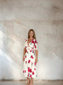 Our bestselling Imelda Dress returns for another season in a beautiful Hand painted cream poppy on viscose crepe, crafted from soft and lightweight viscose crepe. Loved for its flattering, feminine silhouette, this signature style has remained a customer favourite for three years.